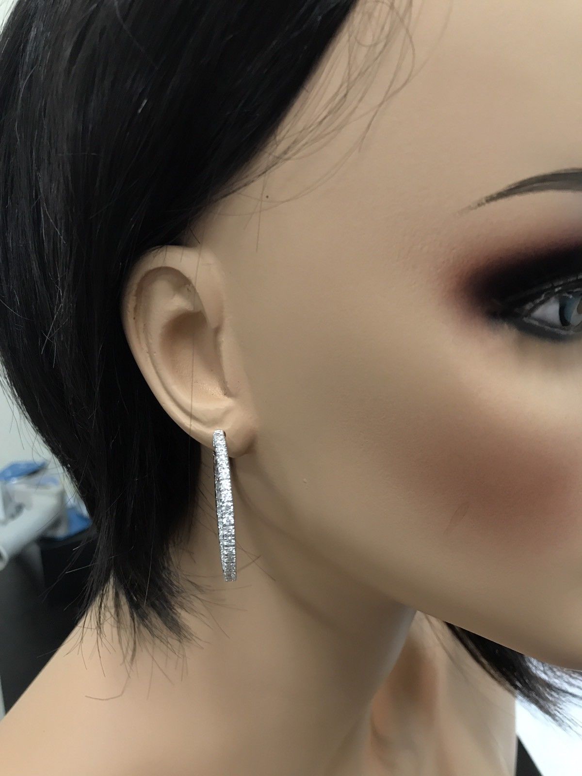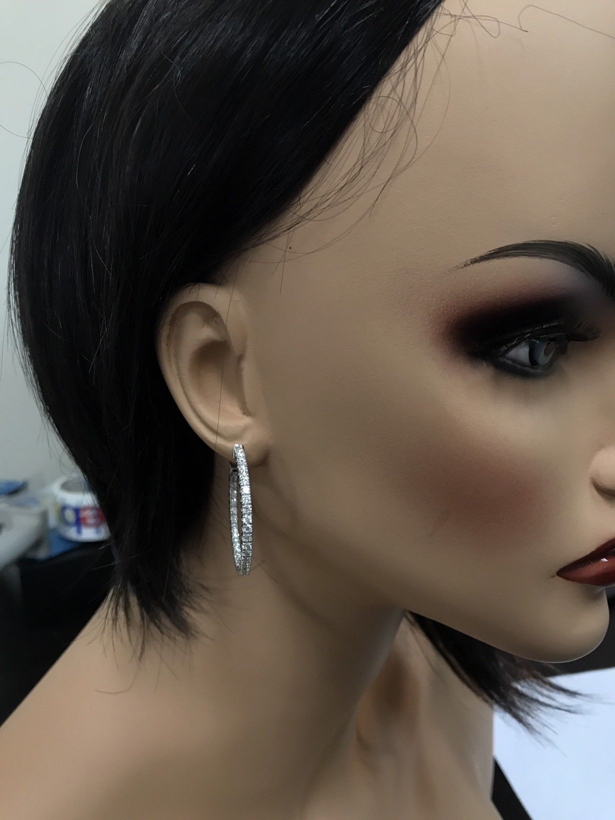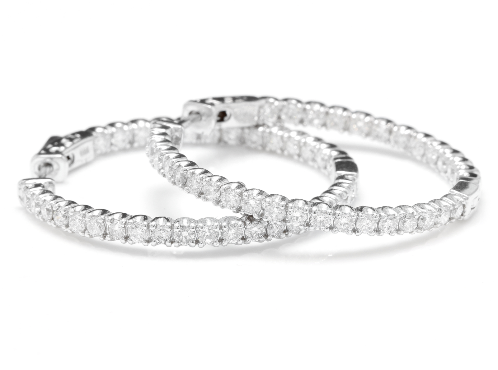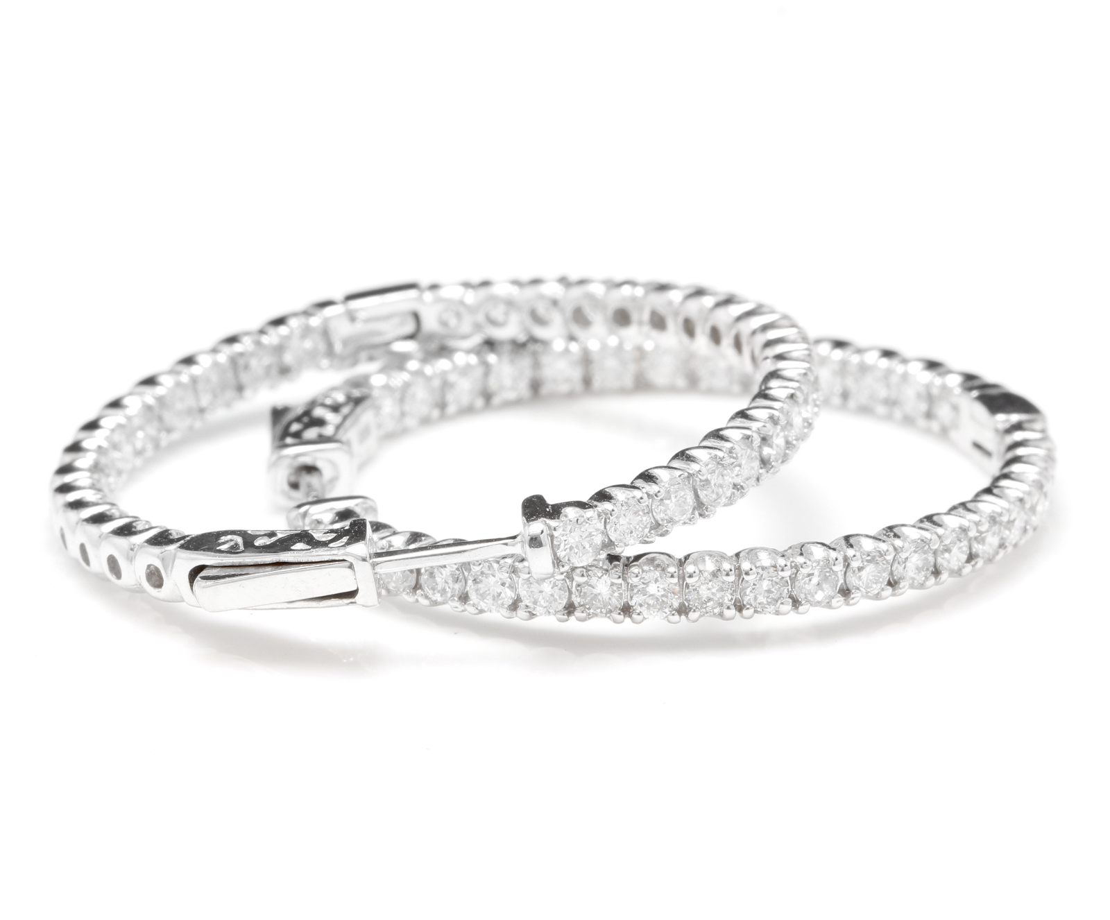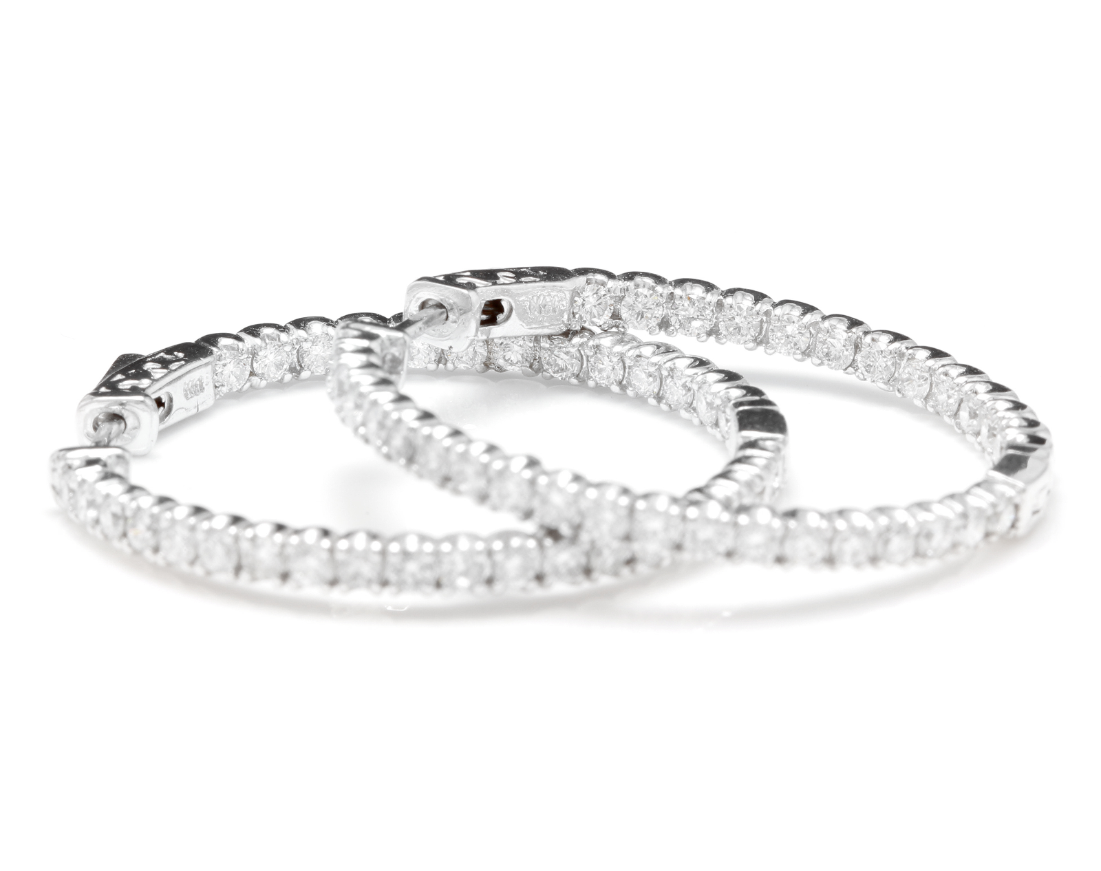 Exquisite 2.85 Carats Natural Diamond 14K Solid White Gold Hoop Earrings